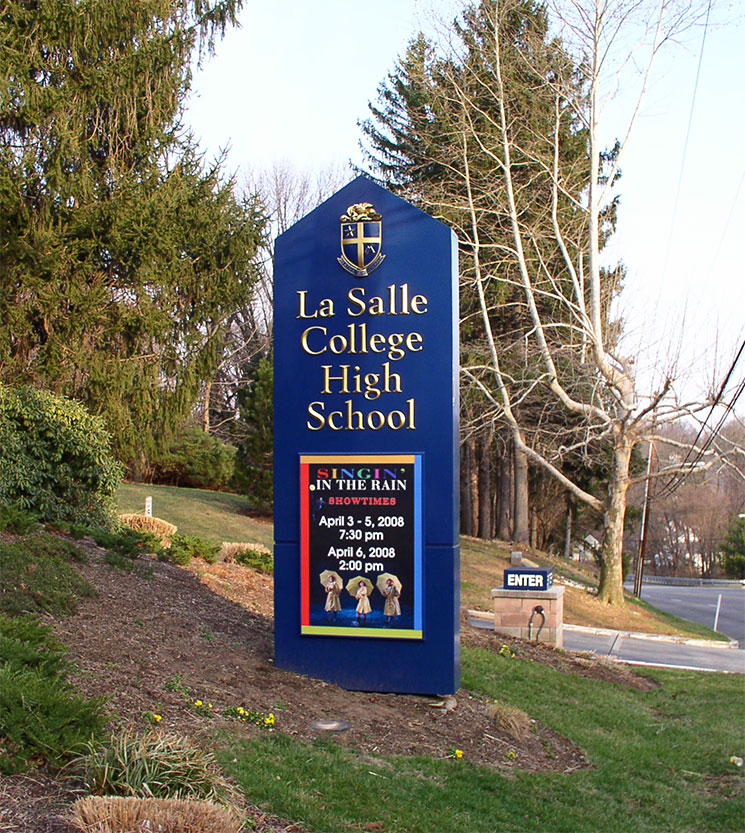 The second variety has the same construction as above, less the electrical aspects. For monuments such as non-illuminated, the graphics are merely applied as pressure sensitive vinyl onto a flat metal surface. This offers the option of having an extremely professional sign while keeping the price tag down. Dimensional letters can also be applied to a sign of this sort, to present the monument with more depth. These types of monuments are also used for businesses’ property fronts.